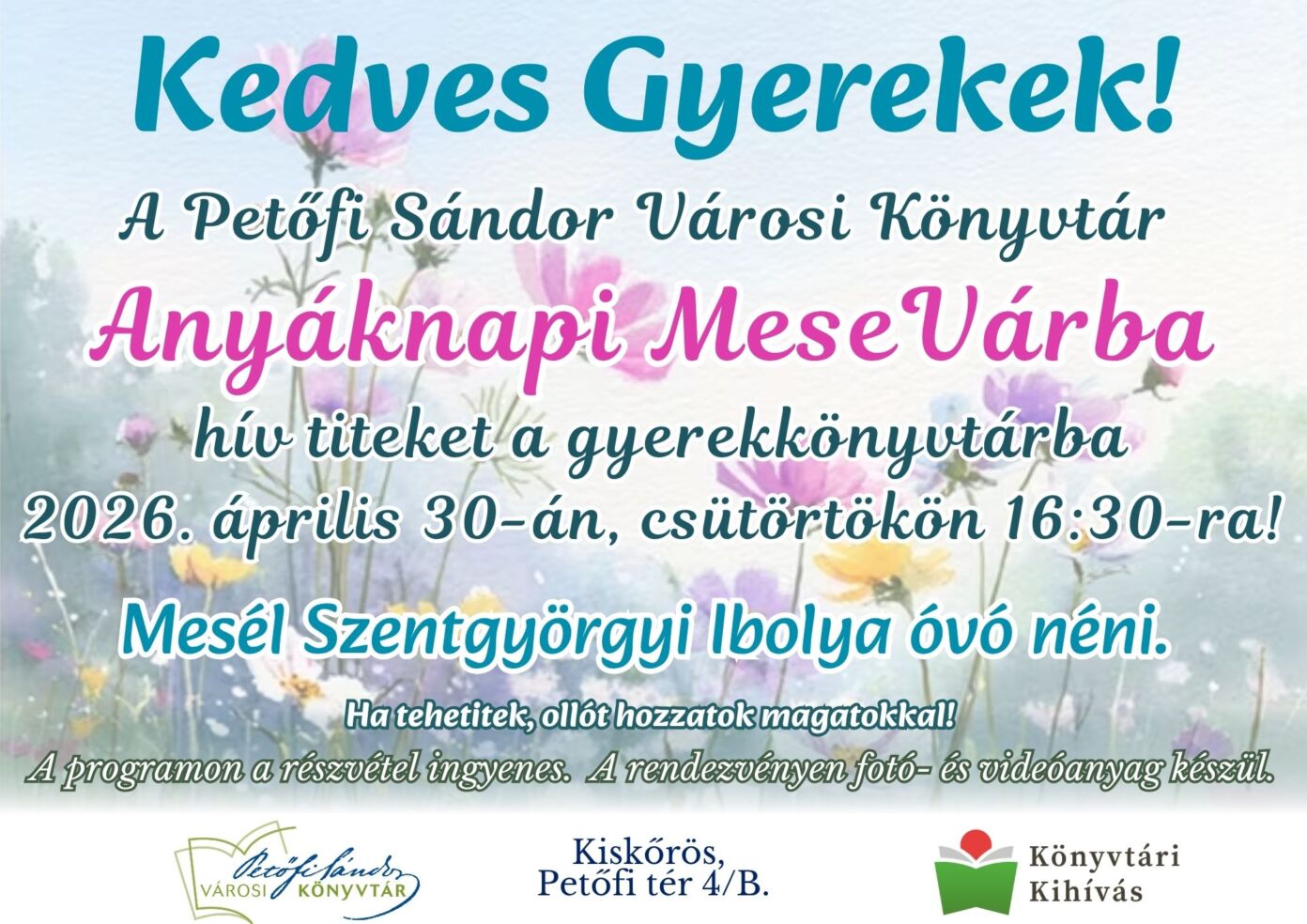 Petőfi Sándor Városi Könyvtár , 2026. április 30. 16:30 - 18:30