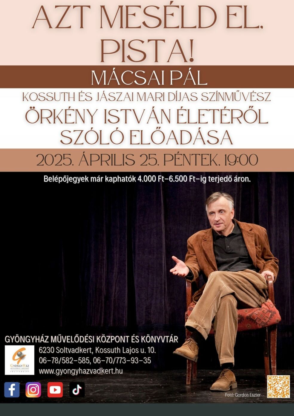 Gyöngyház Kulturális Központ és Könyvtár - Soltvadkert, 2025. április 25. 19:00 - 21:00