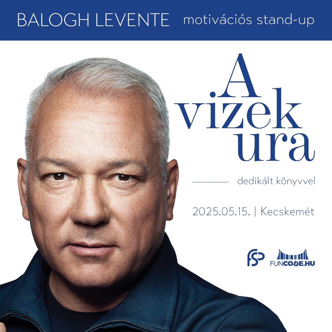 Exkluzív, nagy szabású motivációs stand-up estje során őszintén mesél a sikerhez vezető útjáról és küzdelmeiről, valamint a sorsfordító pillanatokról. Az előadás rengeteg nevetést, érzelmet, értékes tanulságot és látványos show-elemeket ígér. A jegy ára tartalmazza A vizek ura című dedikált könyvet, de ez még nem minden! Te lehetsz az 5 szerencsés egyike, aki egy könyvben elrejtett meghívónak köszönhetően személyesen is találkozhat Leventével! Az, hogy szeretnél-e üzletelni a meghívóval, csak rajtad múlik!