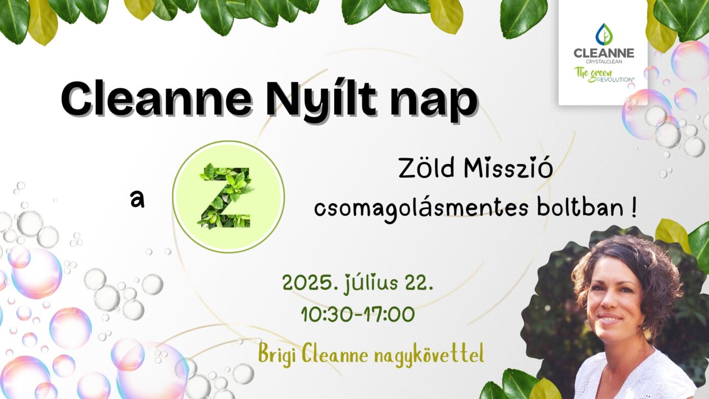 Cleanne – zöld missziós nyílt nap 2025-07-15 Kecskemét, Vágó utca 3. fsz. 5. ajtó., 2025. július 22. 10:30 - 17:00 Facebook esemény