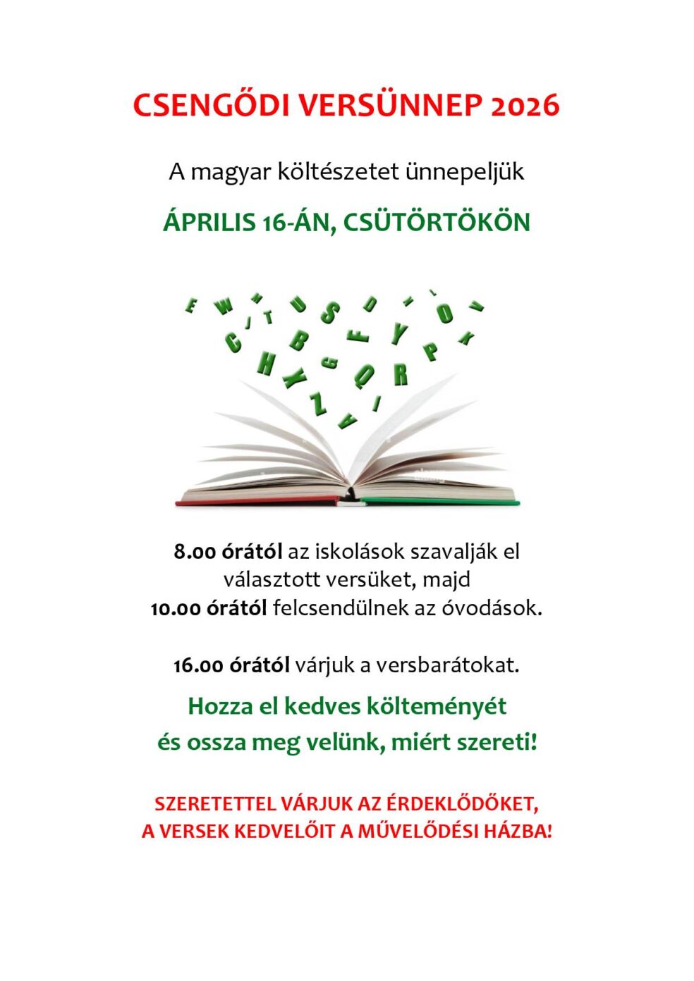 Dankó Pista Művelődési Ház - Csengőd, 2026. április 16. 08:00 - 18:00