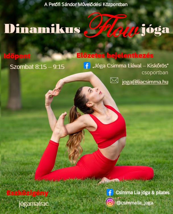 Dinamikus Flow jóga Liával szombaton 8:15-től a Petőfi Sándor Művelődési Központban!
