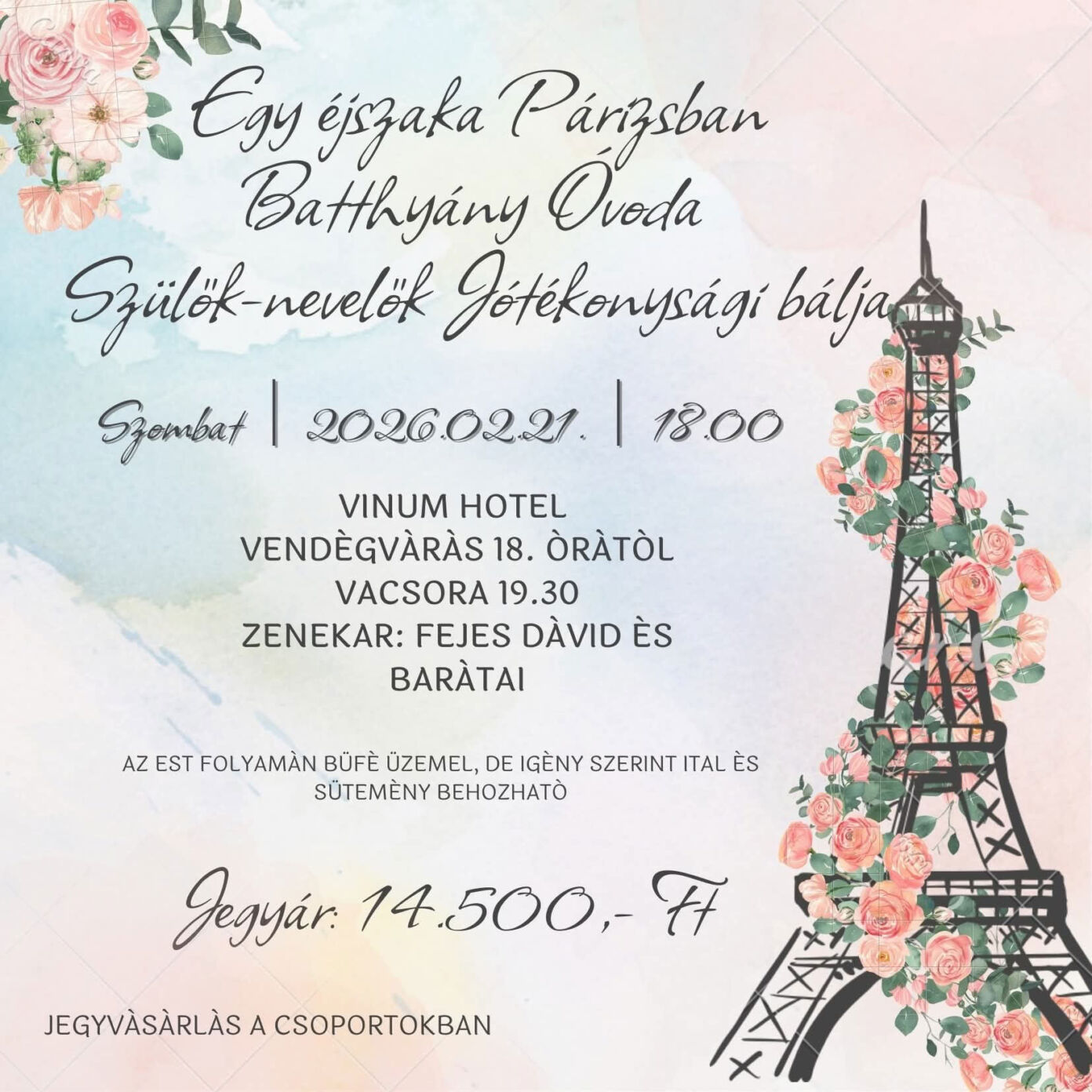 Egy Éjszaka Párizsban: Batthyány Óvoda Szülők-nevelők Jótékonysági bálja 2026-02-16 Kiskőrös, Vinum Hotel, 2026. február 21. 18:00 - 23:59