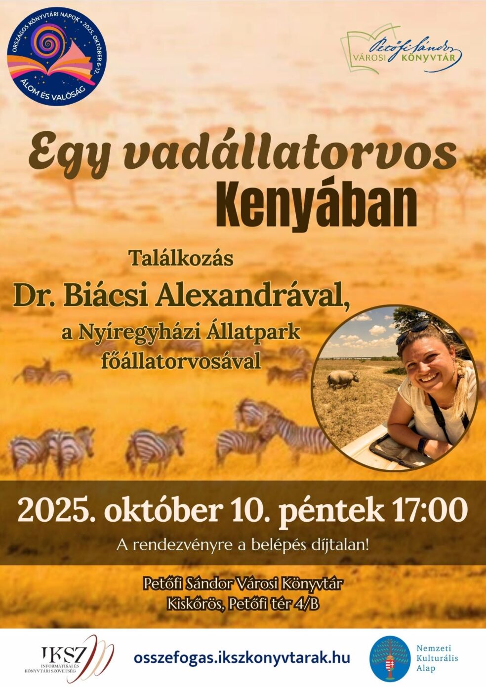 Az Országos Könyvtári Napok programsorozat keretében vendégünk lesz Dr. Biácsi Alexandra, a Nyíregyházi Állatpark főállatorvosa.