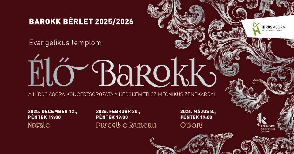 Élő barokk – Purcell E Rameau 2026-01-09 Kecskemét, Evangélikus templom, 2026. február 20. 19:00 - 21:00 Facebook esemény