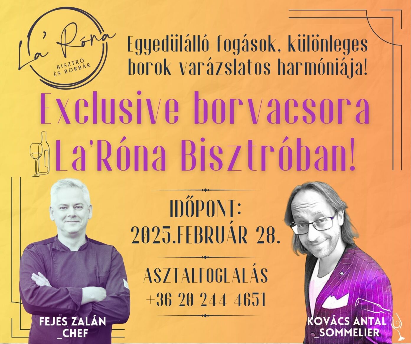 La'Róna Bisztró és Borbár, Kiskőrös, Petőfi S. út 8., 2025. február 28. 18:00 - 23:00