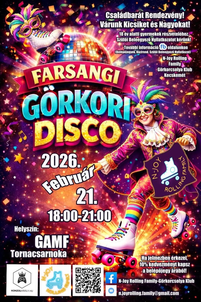 Farsangi Görkori Disco 2026-02-17 Kecskemét, GAMF tornacsarnoka, 2026. február 21. 18:00 - 21:00 Facebook esemény