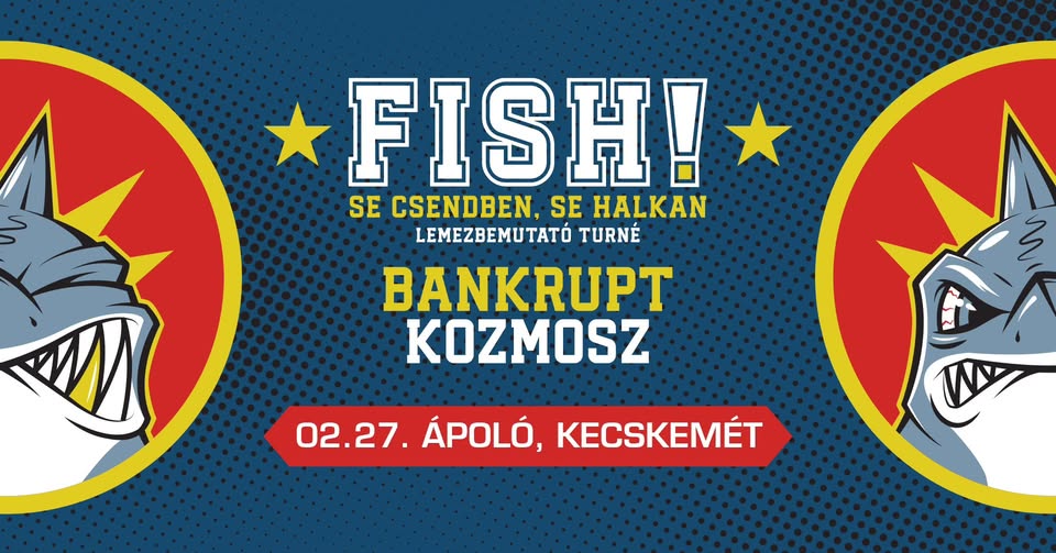 FISH! lemezbemutató, vendég: Bankrupt + Kozmosz 2026-01-21 Kecskemét, Ápoló Klub, 2026. február 27. 19:00 - 23:59 Facebook esemény