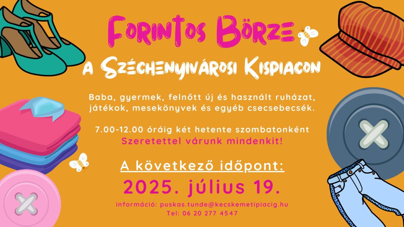 Forintos Börze 2025-07-16 Kecskemét, Budai utca 2/A., 2025. július 19. 07:00 - 20:00 Facebook esemény
