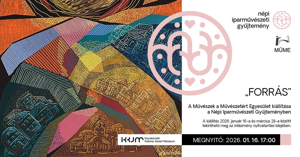 Forrás – A Művészek a Művészetért Egyesület kiállítása 2026-01-14 Kecskemét, Népi Iparművészeti Gyűjtemény, 2026. január 16. 17:00 - 18:00 Facebook esemény