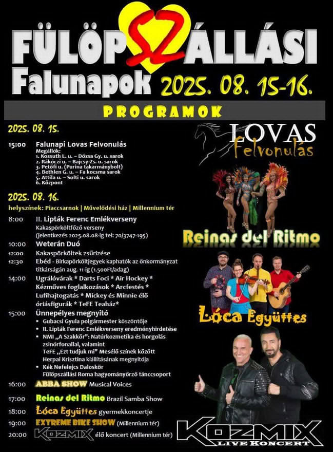 Fülöpszállás, Piaccsarnok, Művelődési ház, Millennium tér, 2025. augusztus 16. 08:00 - 23:00