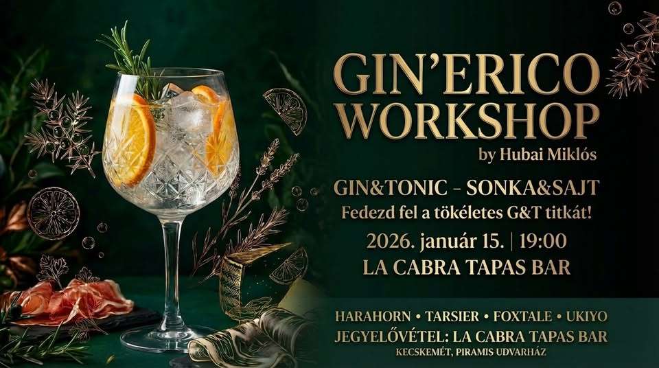 GIN’erico workshop by Hubai Miklós 2026-01-13 Kecskemét, La Cabra Tapas Bar , 2026. január 15. 19:00 - 21:00 Facebook esemény