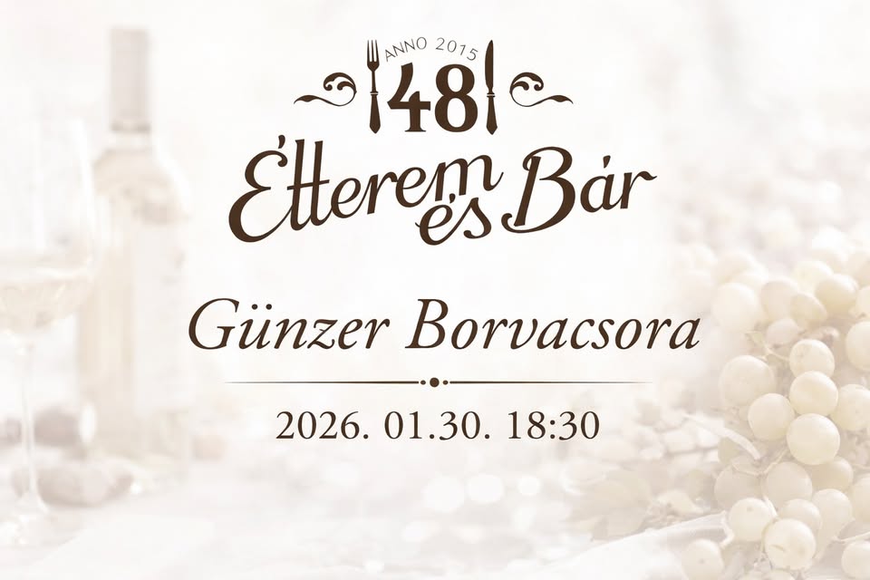Günzer borvacsora 2026-01-13 Kecskemét, 48 Étterem és Bár, 2026. január 30. 18:30 - 21:00 Facebook esemény