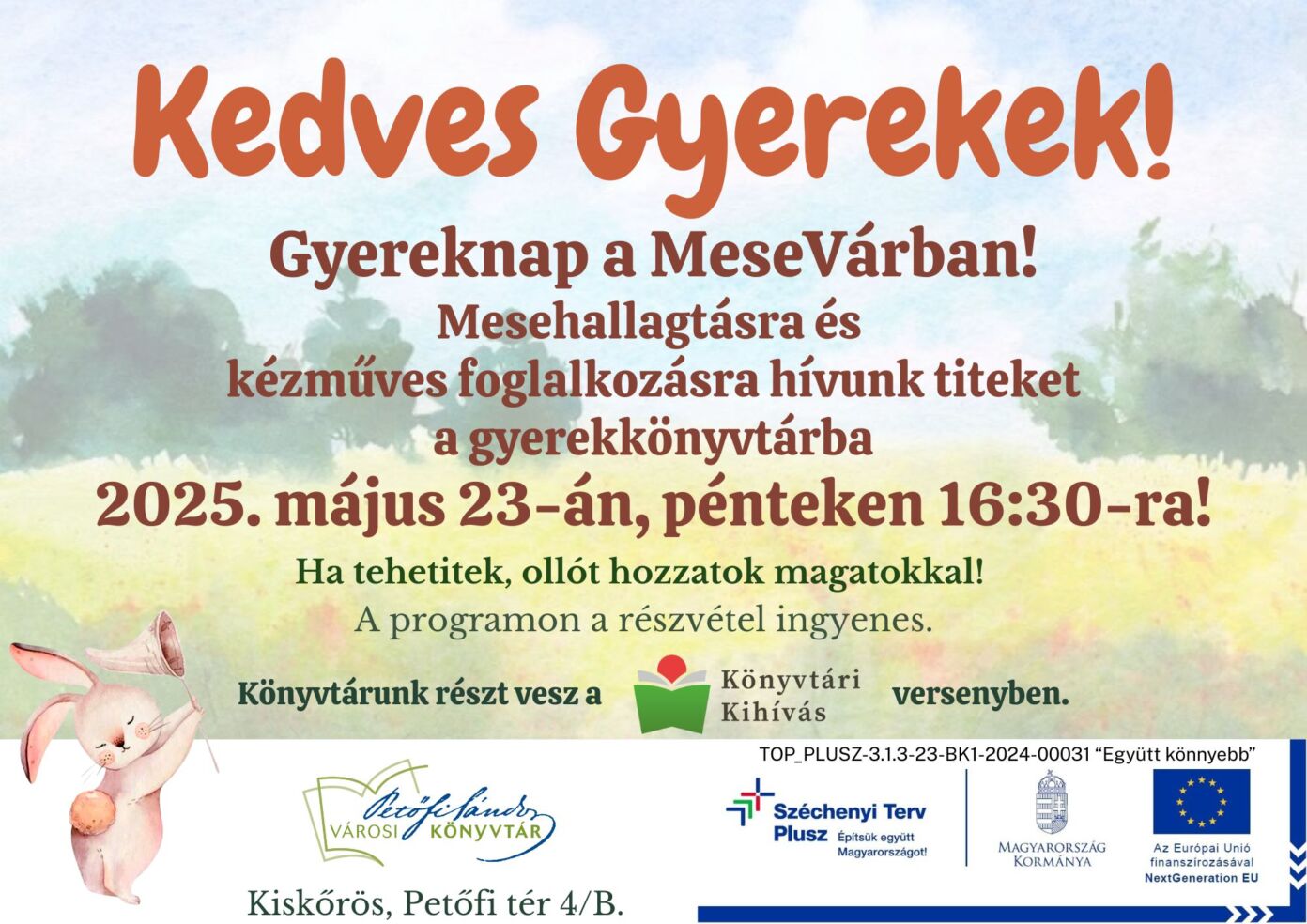 Kiskőrös, Petőfi Sándor Városi Könyvtár, Petőfi tér 4/B., 2025. május 23. 16:30 - 18:00