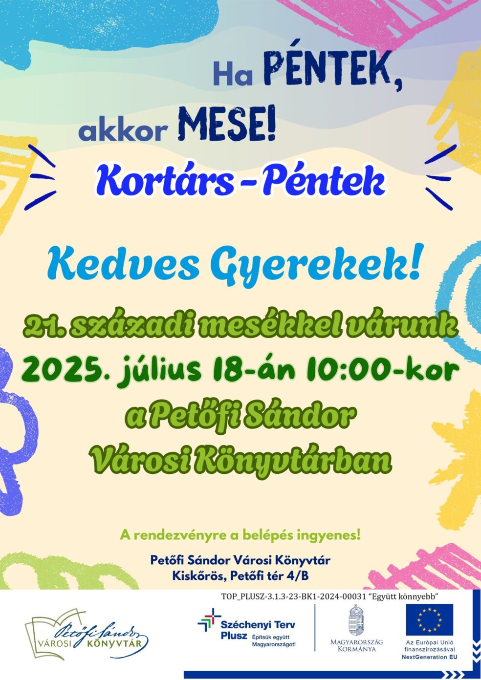 Kiskőrös, Petőfi Sándor Városi Könyvtár, Petőfi tér 4/B. , 2025. július 18. 10:00 - 11:30