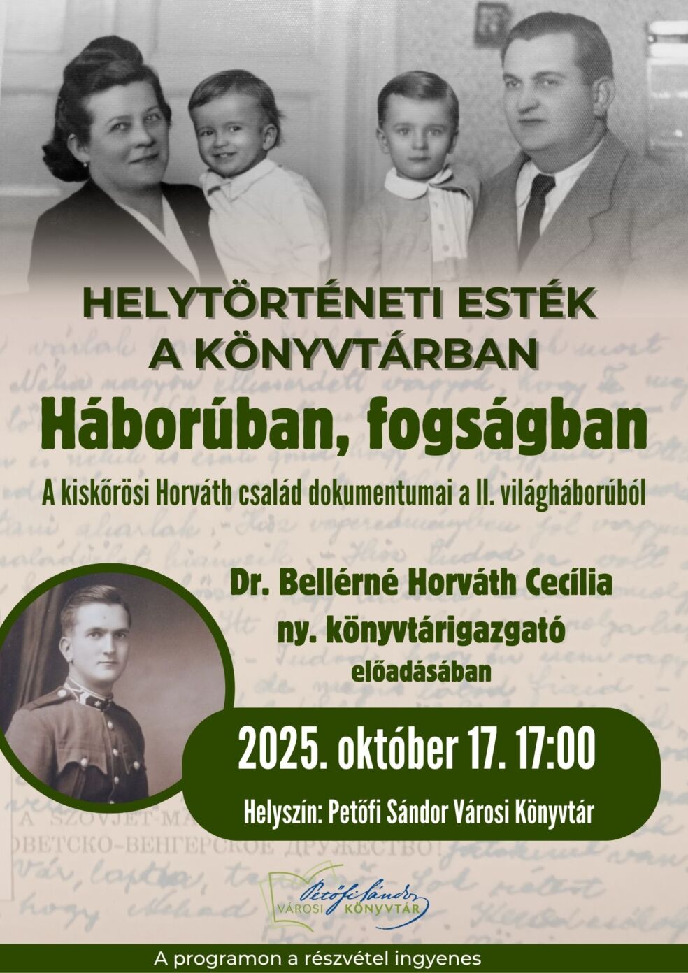 Petőfi Sándor Városi Könyvtár - Kiskőrös , 2025. október 17. 17:00 - 19:00