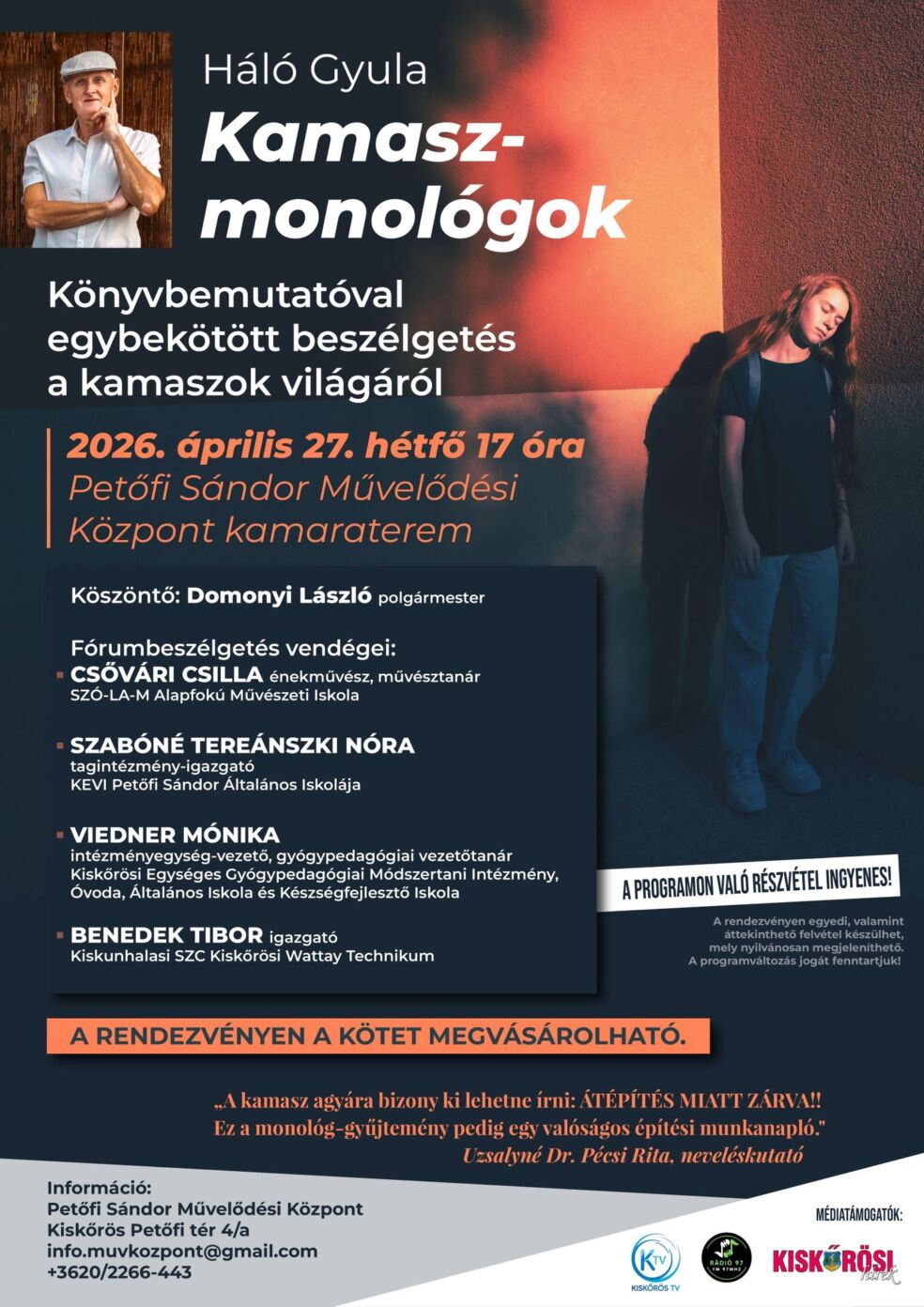 Petőfi Sándor Művelődési Központ, Kiskőrös, Petőfi Sándor tér 4/A., 2026. április 27. 17:00 - 19:00
