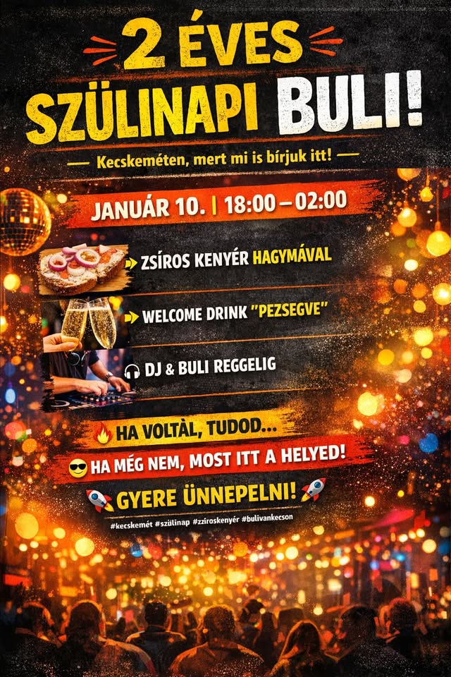 Hivatal Bár – Szülinapi Buli 2026-01-09 Kecskemét, Hivatal Bár, Izsáki út 2. , 2026. január 10. 18:00 - 23:59 Facebook esemény