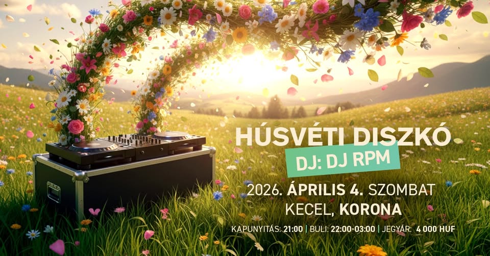 Húsvéti Korona Disco 2026-02-27 Kecel, Korona Diszkó Kecel, 2026. április 4. 21:00 - 23:59 Facebook esemény