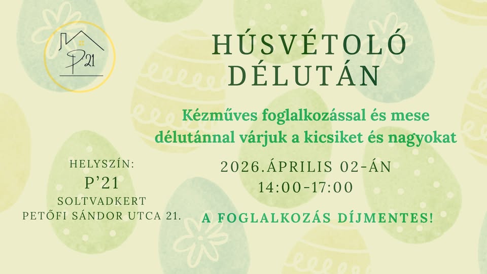 Soltvadkert, Petőfi Sándor utca 21. , 2026. április 24. 14:00 - 17:00
