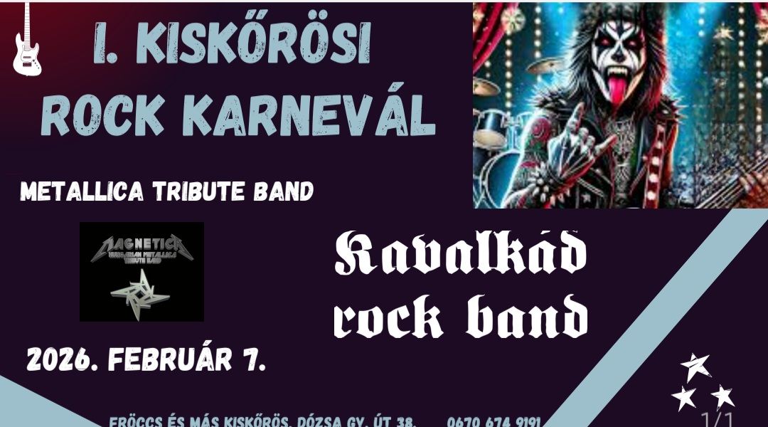I. Kiskőrösi Rock Karnevál 2026-01-05 Kiskőrös, Fröccs és Más, Dózsa György út 38. , 2026. február 7. 20:00 - 23:59 Facebook esemény