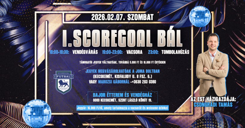 I. Scoregoal Bál 2026-01-21 Kecskemét, Szent László körút 19., 2026. február 7. 18:00 - 23:59 Facebook esemény