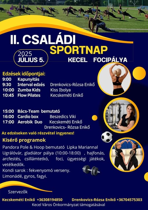 Kapd elő a sportcipőt meg a gyerekeket, meg a gyerekek sportcipőjét, és ha rá tudod venni, a gyerekek apukáját is, meg az ő sportcipőjét, mert jön a II. Családi Sportnap: 2025. július 5. |Kecel, focipálya