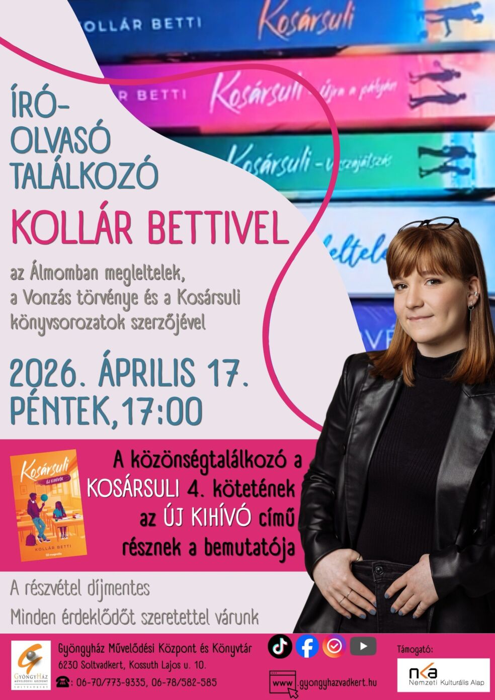 Gyöngyház Művelődési Központ és Könyvtár, Soltvadkert, Kossuth Lajos u. 10., 2026. április 17. 17:00 - 19:00