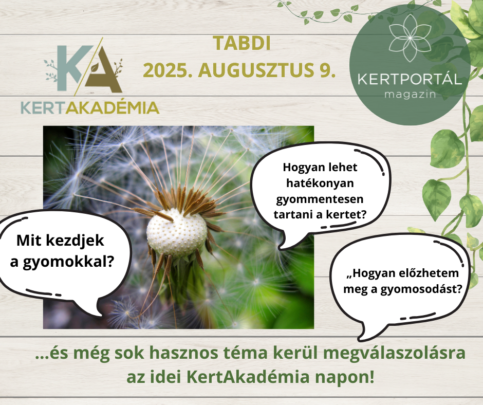 A belépés jegyvásárláshoz kötött: KertAkadémia 2025. augusztus 9. – Tabdi – Kertportál Webshop