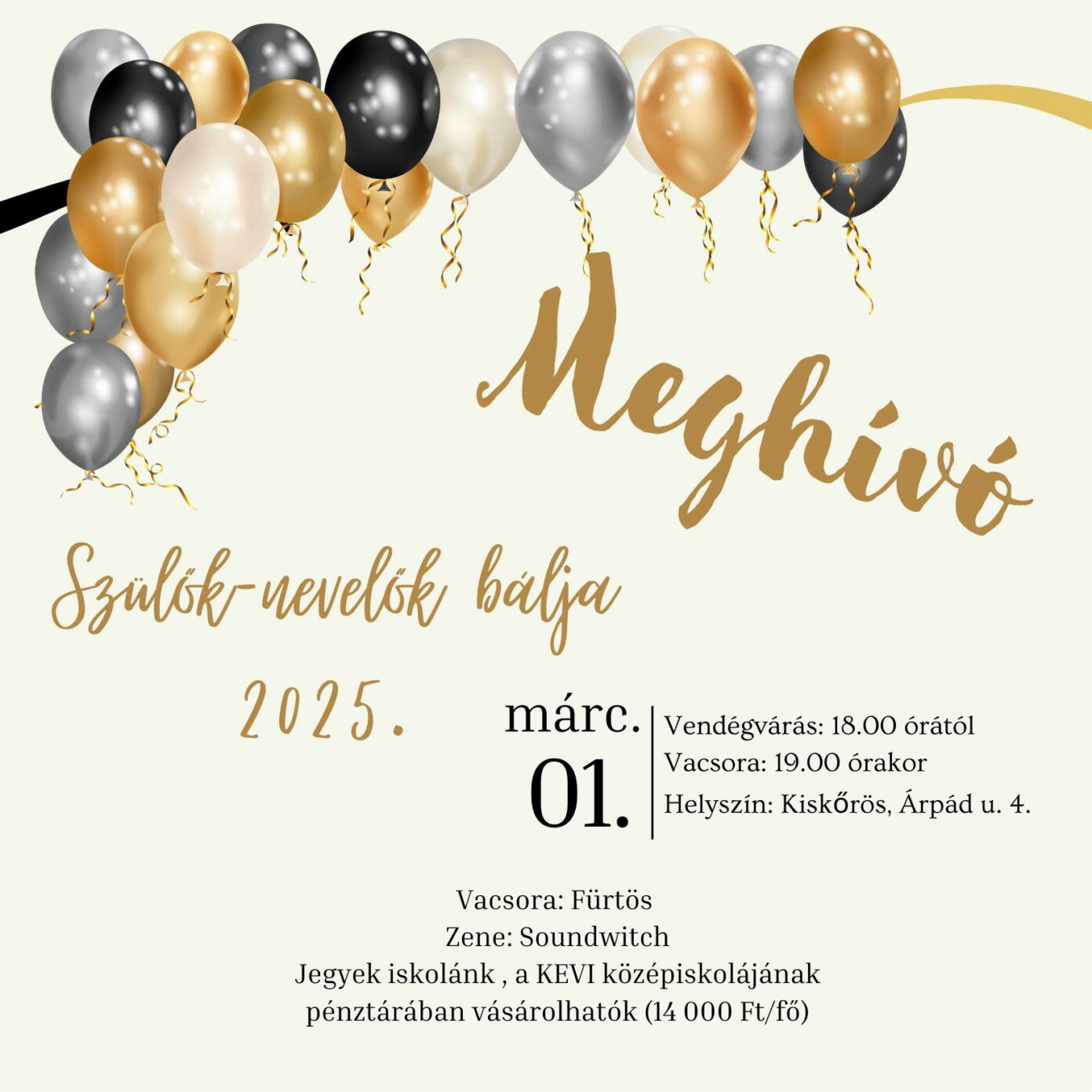 KEVI gimnázium: szülők-nevelők bálja 2025-02-10 Kiskőrös, Árpád utca 4. , 2025. március 1. 18:00 - 23:59