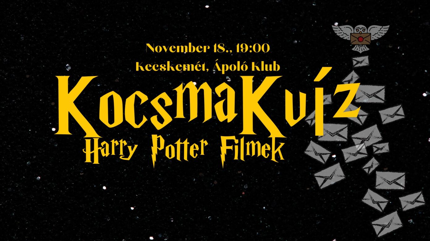 KocsmaKvíz – Harry Potter filmek 2025-11-13 Kecskemét, Ápoló Klub, Olimpia u. 12. , 2025. november 18. 19:00 - 21:00 Facebook esemény