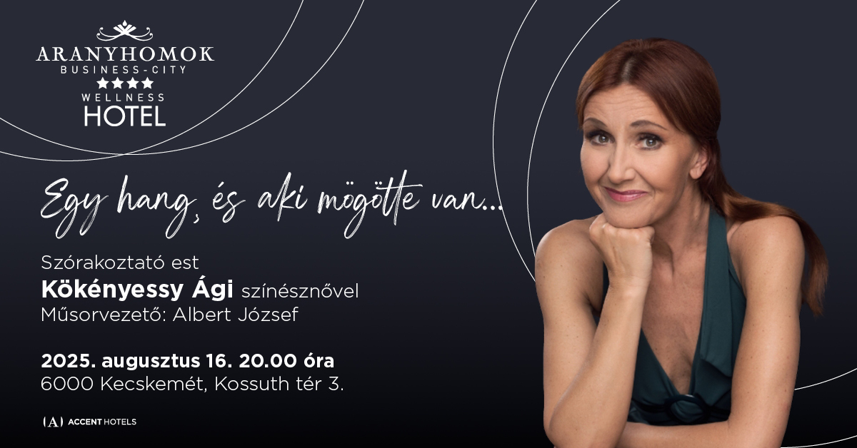 Kökényessy Ági szórakoztató estje – Egy hang, és aki mögötte van 2025-08-13 Kecskemét, Kossuth tér 3., 2025. augusztus 16. 20:00 - 21:30 Facebook esemény