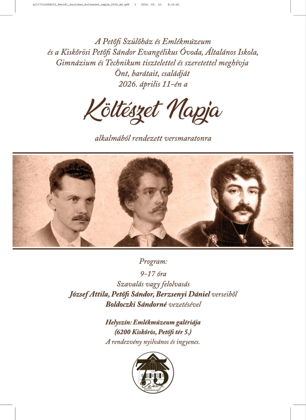 Kiskőrös, Petőfi tér 5. Emlékmúzeum galériája, 2026. április 11. 09:00 - 17:00