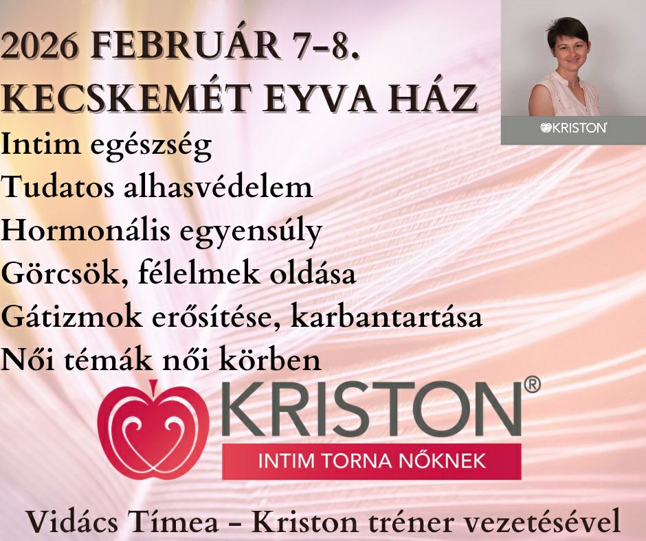 Kriston Intim Torna nőknek tréning 2026-01-14 Kecskemét, EYVA HÁZ, 2026. február 7. 09:00 - 15:00 Facebook esemény