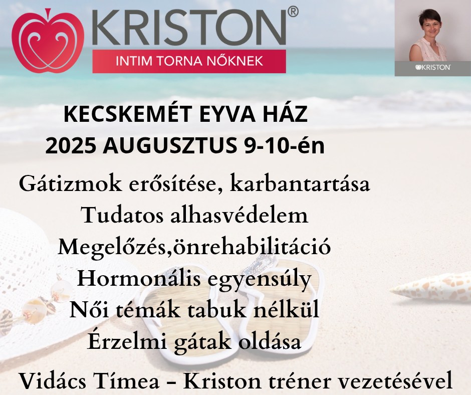 Kriston intim torna nőknek 2025-07-31 Kecskemét, Eyva Ház, Hoffmann János u. 10. , 2025. augusztus 9. 09:00 - 15:00 Facebook esemény