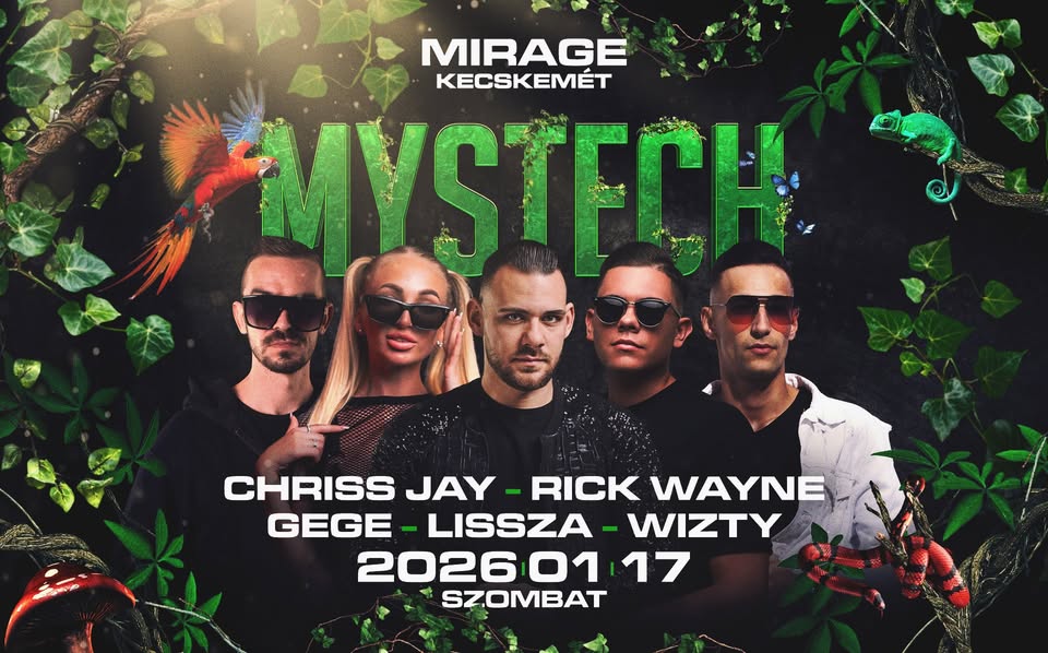 Mystech® – Welcome to the jungle 2026-01-09 Kecskemét, Mirage, 2026. január 17. 22:00 - 23:59 Facebook esemény