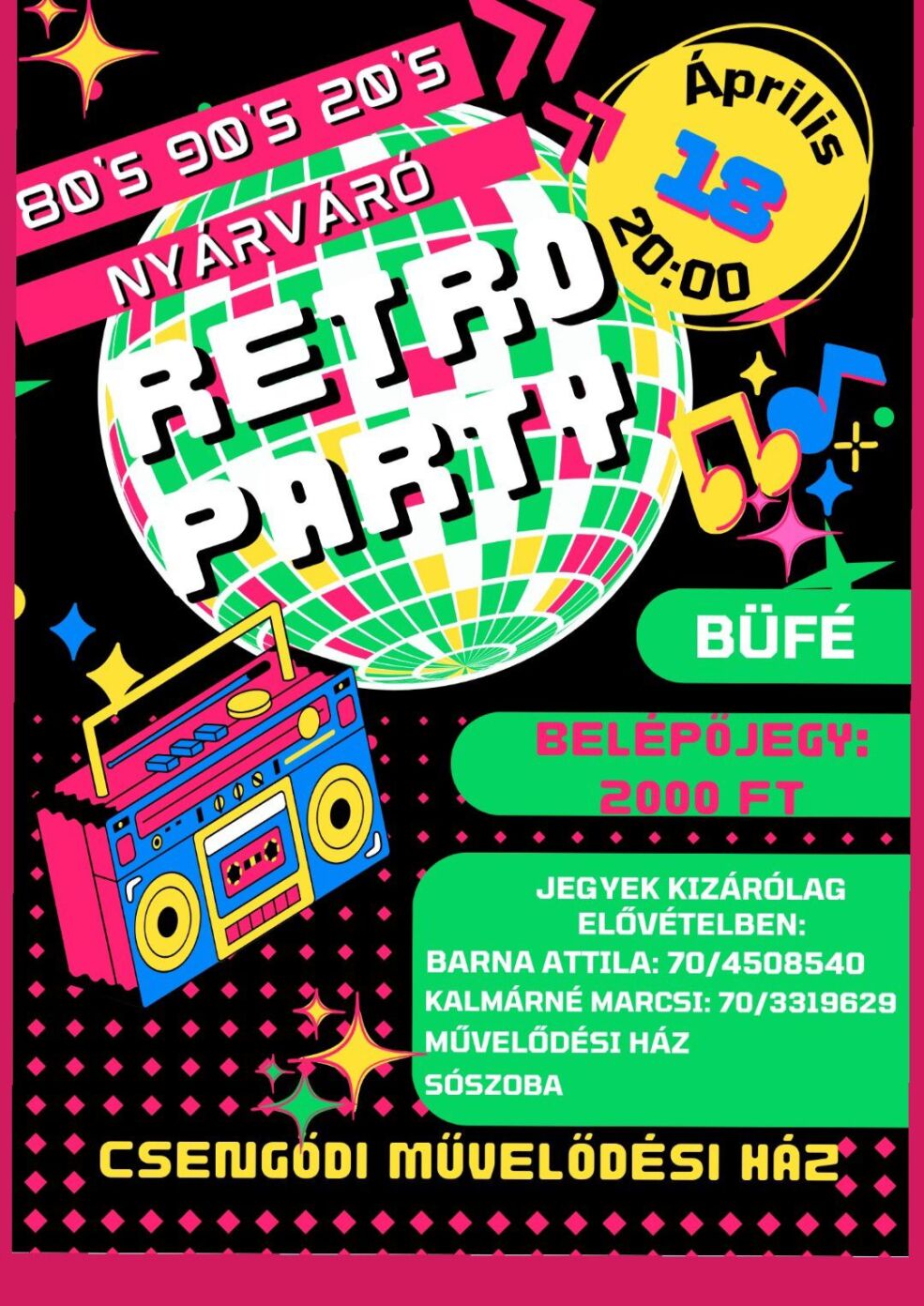 Csengődi Művelődési Ház, 2026. április 18. 20:00 - 23:59