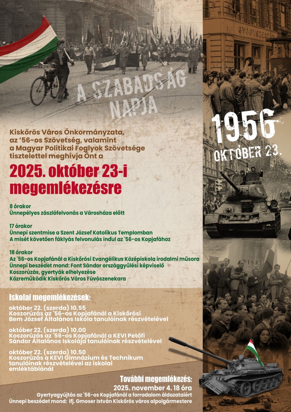 Október 23-i megemlékezés Kiskőrösön 2025-10-14 Kiskőrös, több helyszín, 2025. október 23. 08:00 - 19:30