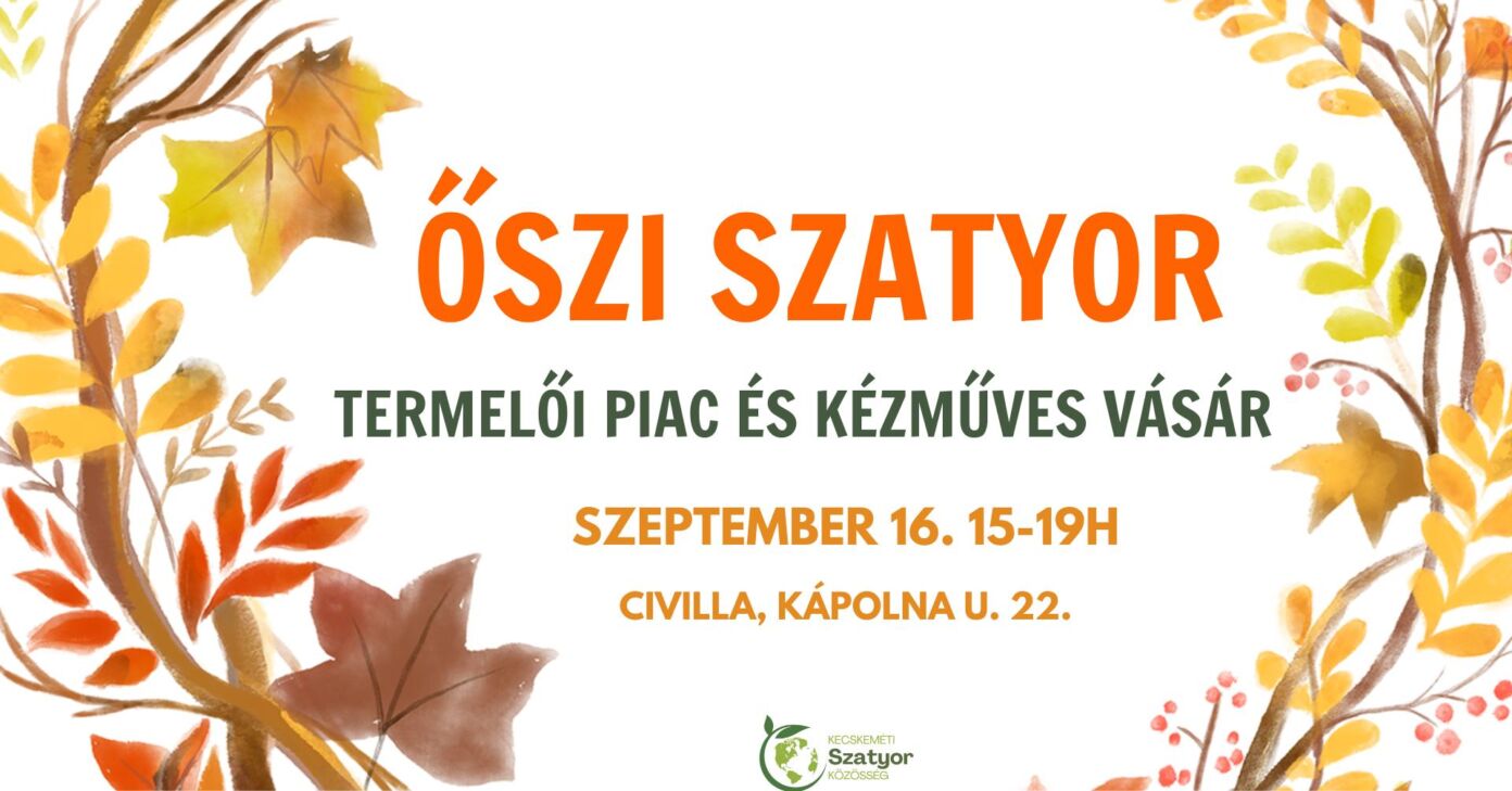 Őszi Szatyor – Termelői Piac és Kézműves Vásár 2025-09-10 Kecskemét, Kápolna u. 22., 2025. szeptember 16. 15:00 - 19:00 Facebook esemény