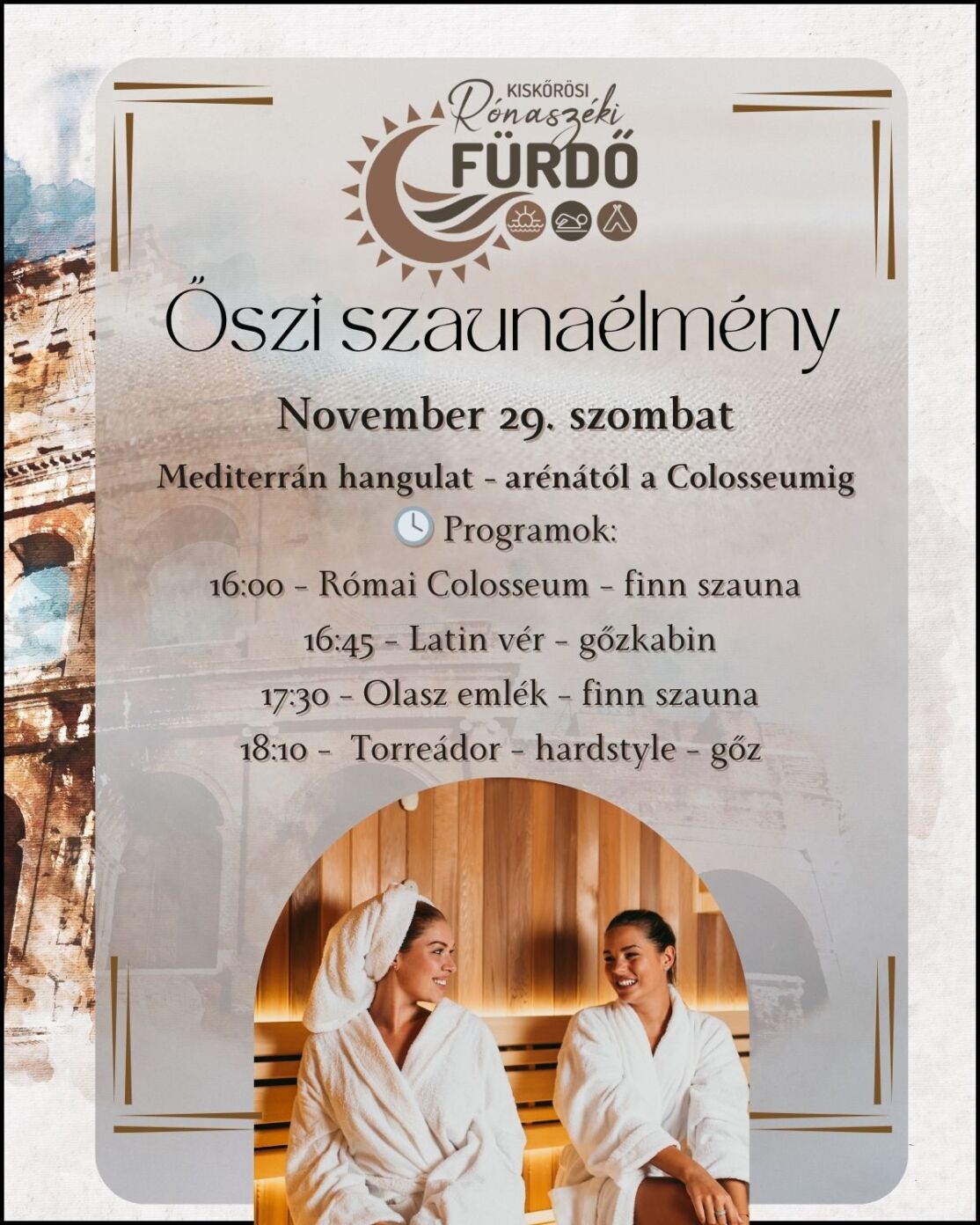 November 29-én Tóth Csaba szaunamester különleges felöntésekkel varázsol mediterrán hangulatot a fürdőbe!