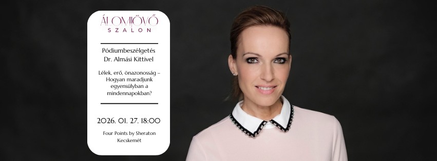 Pódiumbeszélgetés Dr. Almási Kittivel – Lélek, erő, önazonosság – Hogyan maradjunk egyensúlyban? 2026-01-09 Kecskemét, Four Points by Sheraton, 2026. január 27. 18:00 - 20:00 Facebook esemény