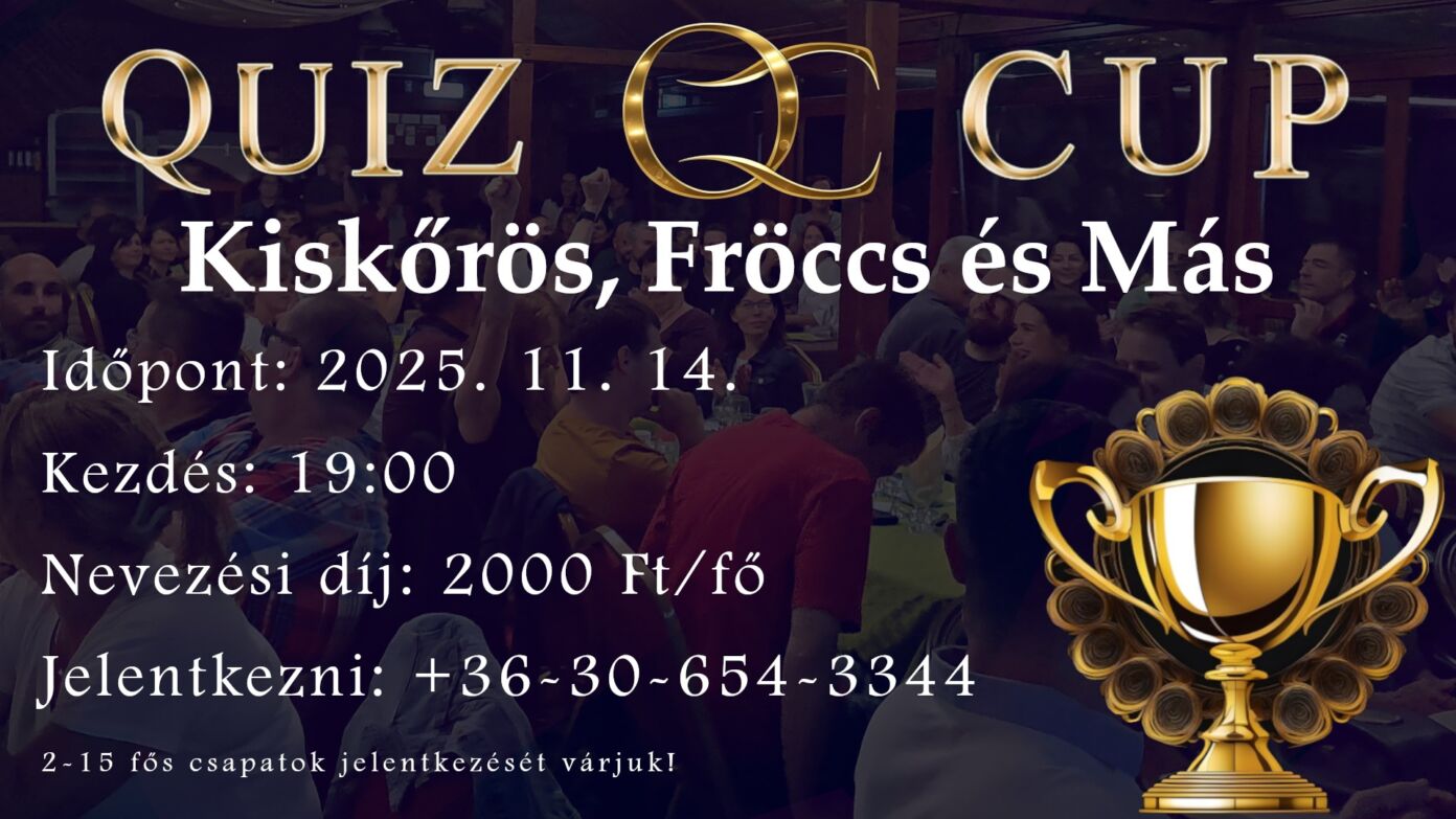 Quiz Cup – III. forduló 2025-11-06 Kiskőrös, Fröccs és Más, Dózsa György út 38. , 2025. november 14. 19:00 - 21:00 Facebook esemény