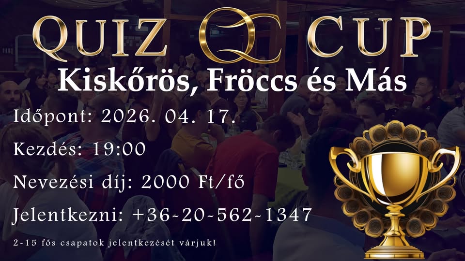 Quiz Cup – VII. Forduló 2026-04-07 Fröccs és Más, Kiskőrös, Dózsa György út. 44., 2026. április 17. 19:00 - 22:00 Facebook esemény