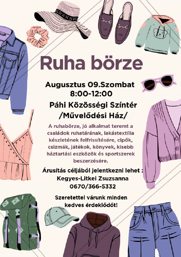 Páhi, Közösségi Színtér, 2025. augusztus 9. 08:00 - 12:00