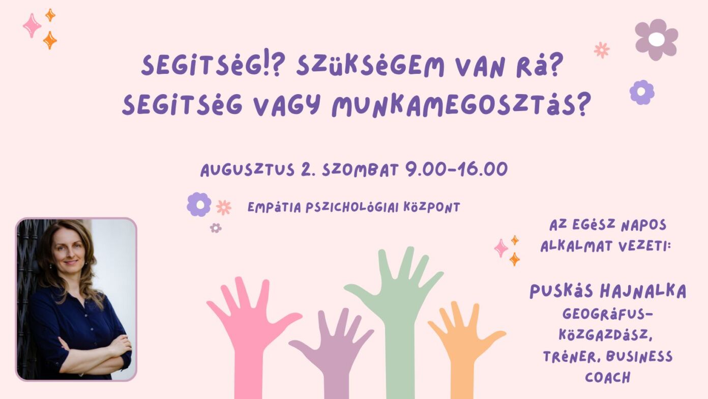 Segítség!? Szükségem van rá? Segítség vagy munkamegosztás – workshop 2025-07-15 Kecskemét, Katona József tér 14., 2025. augusztus 2. 09:00 - 16:00 Facebook esemény