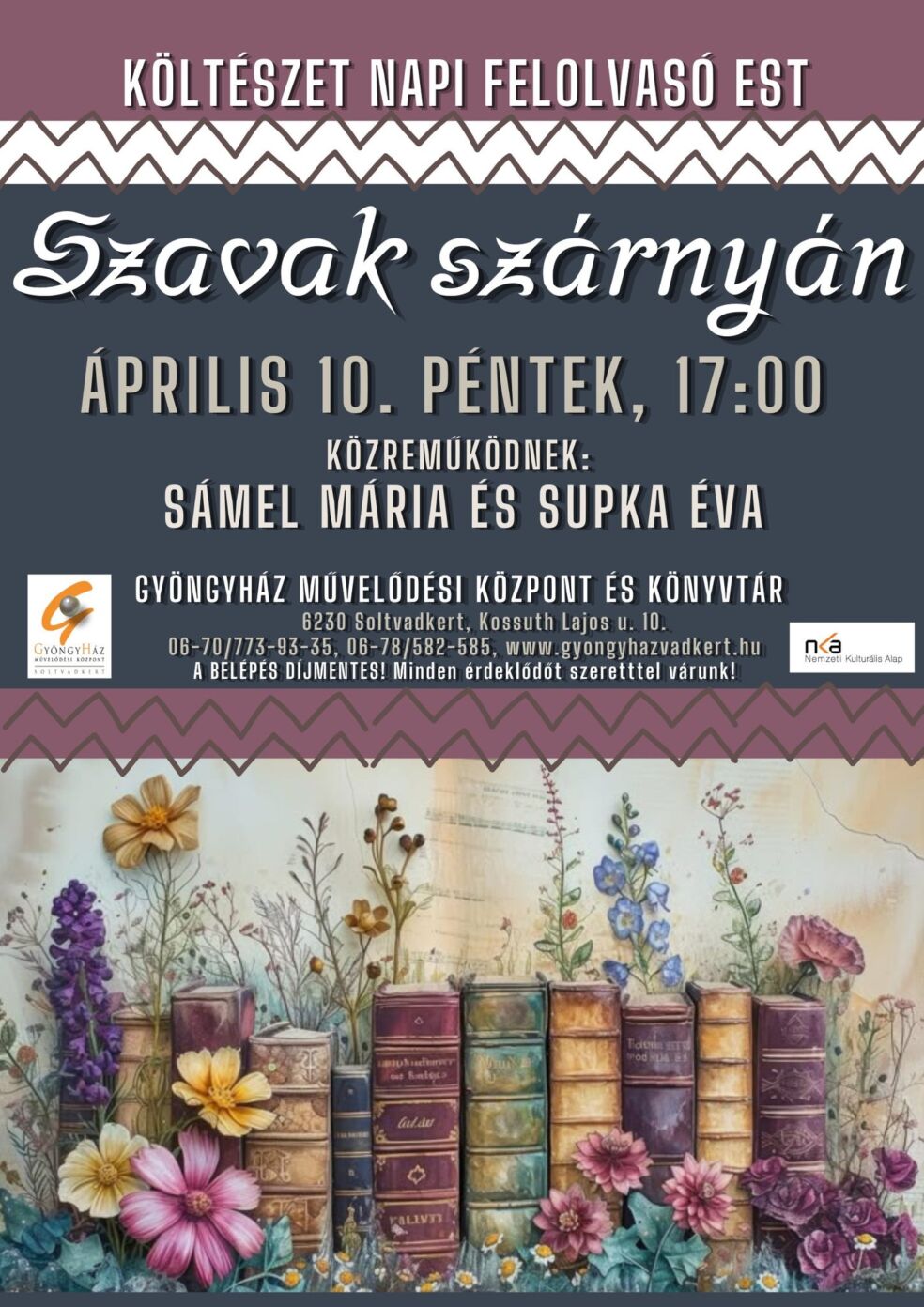 Gyöngyház Művelődési Központ és Könyvtár, Soltvadkert, Kossuth Lajos u. 10., 2026. április 10. 17:00 - 19:00