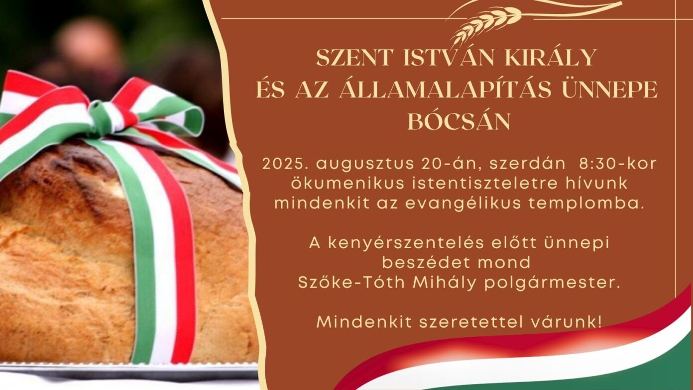Bócsa, Evangélikus templom, 2025. augusztus 20. 08:30 - 10:00