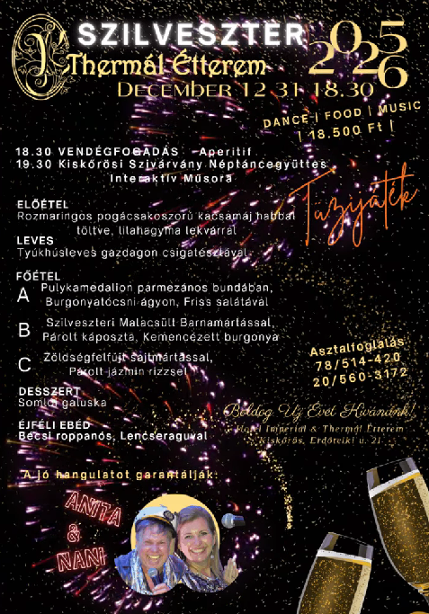 Kiskőrös, Thermál Étterem, Erdőtelki út 21. , 2025. december 31. 18:30 - 23:59