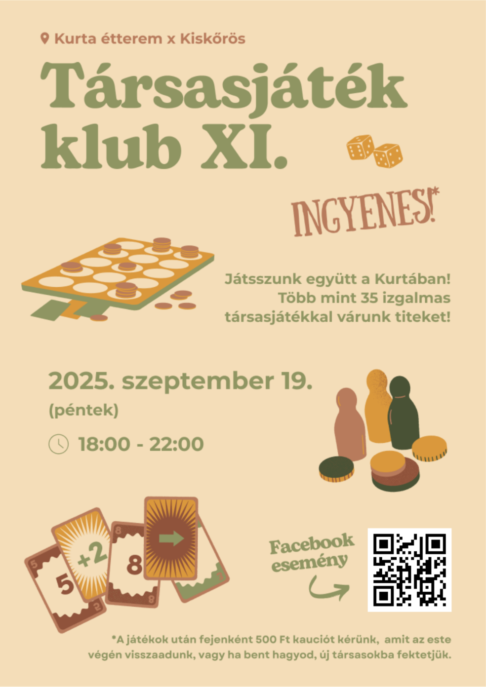 A részvétel ingyenes, azonban a játékok után fejenként 500 forint letéti díjat kérünk,
