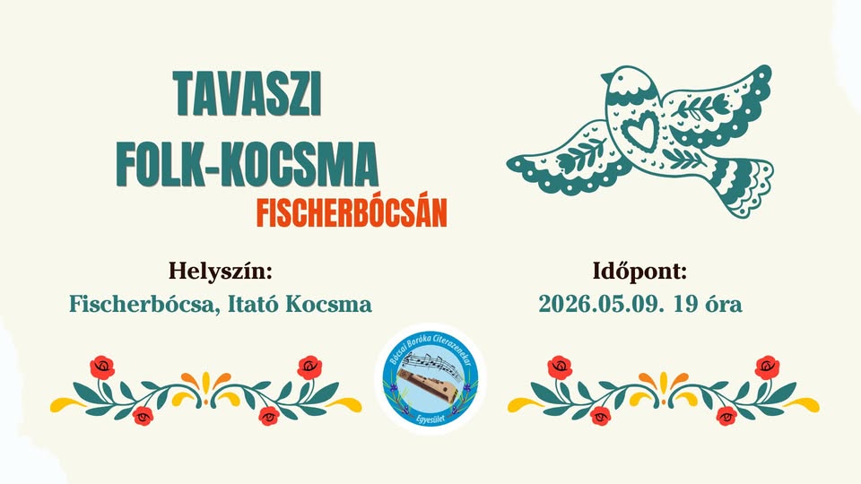 Tavaszi Folk-kocsma 2026-04-20 Fischerbócsa, Itató kocsma, 2026. május 9. 19:00 - 22:00 Facebook esemény